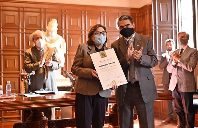 La Universidad Autónoma de San Luis Potosí reconoció con el nombramiento de profesora emérita la trayectoria académica e institucional de la doctora Rosa María Martínez Rider, directora del Centro de Documentación Histórica “Rafael Montejano y Aguiñaga”.
