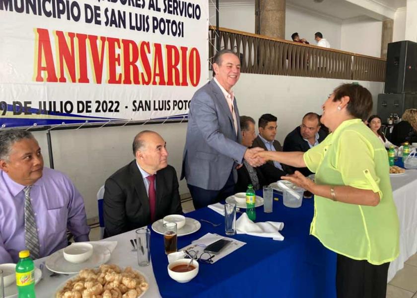Con Miguel Fernando Valladares García como invitado, en memoria de Don Miguel Román Valladares García, la alcaldía de la capital y el sindicato único de Trabajadores al Servicio del Ayuntamiento Municipal de San Luis Potosí celebran el 45 aniversario de la fundación de este organismo de representación de empleados municipales.
