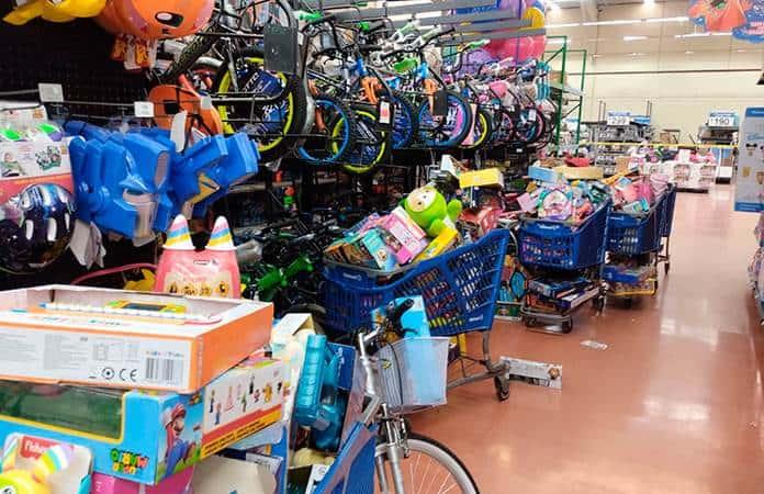 Las áreas de juguetería, antes extensas, ahora lucen acordonadas y se están reduciendo drásticamente. Docenas de productos son acarreados por las y los empleados hacia las bodegas de cada establecimiento para hacer espacio a otros tipos de mercadería.