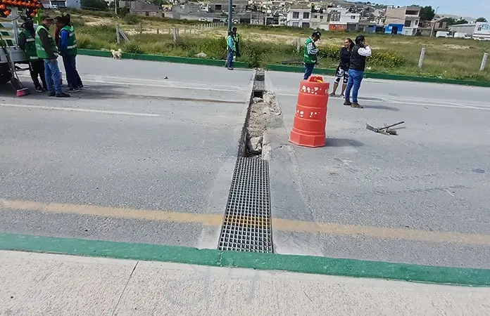 Los trabajadores de la Seduvop demolerán una parte de la caja recolectora afectada y sustituirán la base de soporte, para fabricar y volver a colocar las rejillas perjudicadas.