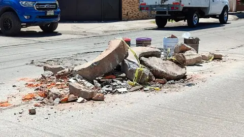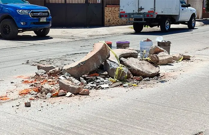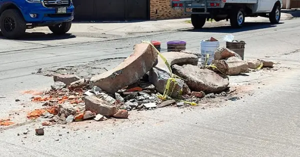 De acuerdo con habitantes de la colonia, desde hace meses se mantienen dos obras de rehabilitación del sistema de agua potable a cargo de Interapas, pero ninguna ha sido concluida. Los montones de escombro y el material dejado sobre la vía obligan a los conductores a maniobrar en zigzag, poniendo en riesgo su seguridad.