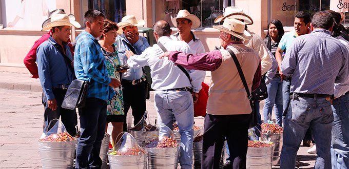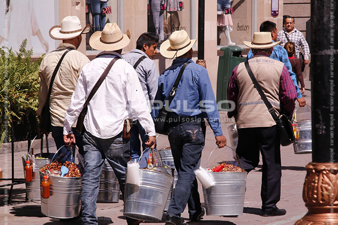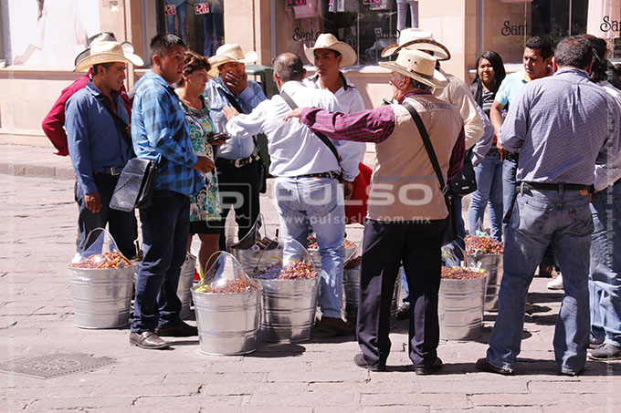 Inspectores de Comercio Municipal retuvieron a comerciantes dedicados a la venta de chapulines, cacahuates y frutas secas detectados en el primer cuadro de la ciudad, argumentándoles carecer de un permiso de venta otorgado por la autoridad.