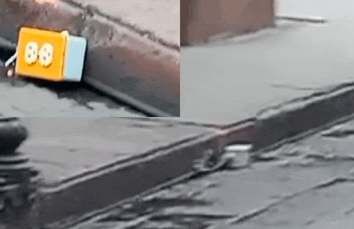 En el proceso de instalación, genios de la electricidad colocaron contactos eléctricos en las orillas de la banqueta a lo largo de la calle, pero tanto las mangueras de los cables como los propios contactos se encuentran descansando directamente en la superficie de rodamiento.