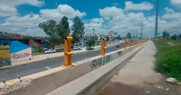 Durante la presente semana se registró la falta de barandales de contención del puente Pemex sobre la avenida Salvador Nava Martínez, justo por encima de la zona peatonal, siendo una de las más transitadas.