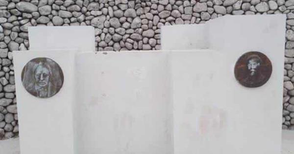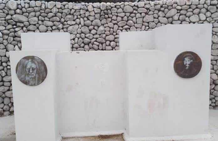 Al frente había además una placa de bronce que daba cuenta de la obra de ambos.