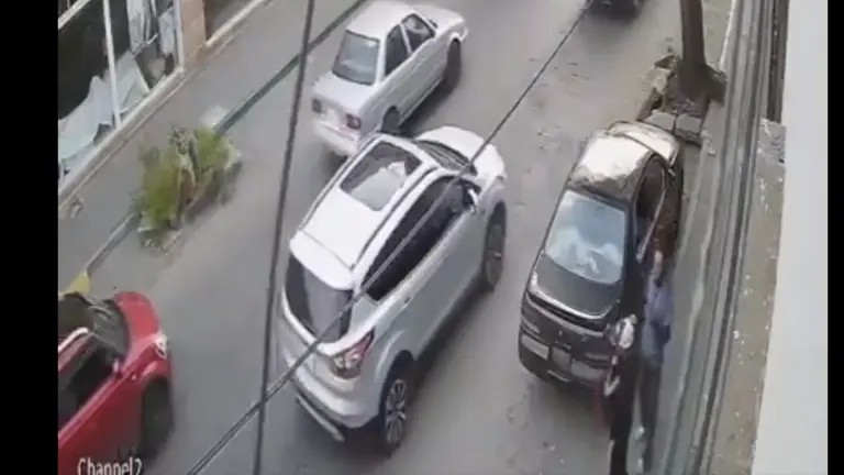 De acuerdo con imágenes de una cámara de seguridad, se observa a dos hombres rondando el automóvil y, tras asegurarse de que no había elementos de seguridad presentes, uno de ellos ingresó al vehículo por la ventana trasera derecha para abrir las puertas y el cofre.