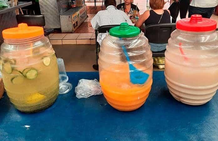 En plazas públicas del Centro Histórico, pero también fuera de esta zona, hay más puestos semifijos y carros movibles que cargan con verdaderos tambos de aguas preparadas con fruta y mucho hielo.