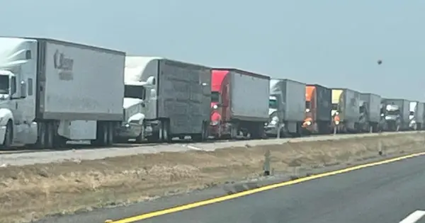 Ahora por el lado del Altiplano, miles de camiones pesados quedaron varados en el gigantesco estacionamiento de la carretera 57 con dirección a la capital de San Luis Potosí.