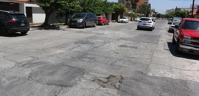 La calle Juan de Oñate se asemeja a una “zona de guerra”, denunciaron residentes del lugar al señalar que la proliferación de baches complica el desplazamiento de los vehículos y la seguridad para los automovilistas.