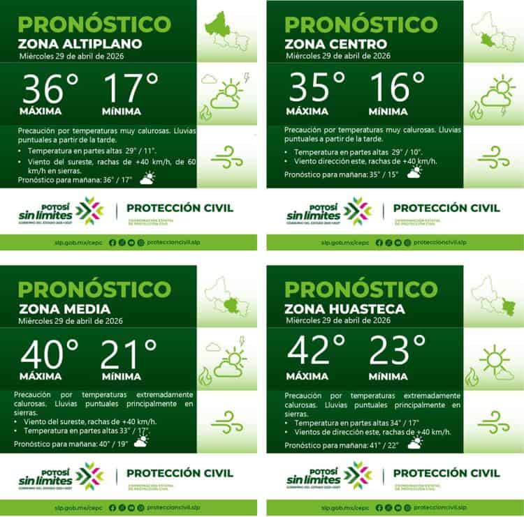 La Coordinación Estatal de Protección Civil informó que la onda de calor se mantiene en San Luis Potosí, impulsada por un sistema de alta presión que seguirá generando temperaturas elevadas en todo el estado.