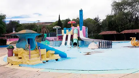 El parque acuático contaba con un estacionamiento grande, una taquilla, área de sanitarios, vestidores y un gimnasio. También fue equipado con alberca, chapoteaderos, una alberca de olas muy grande que era visitada por los habitantes de la ciudad y visitantes en temporada de Semana Santa. Además, contaba con toboganes y áreas de mesas y sillas para el consumo de alimentos y áreas verdes muy amplias.