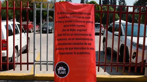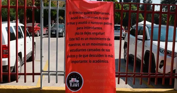Aquel 27 de octubre, el estudiantado colocó mantas que decían: “¡No nos van a callar! El director quiere silenciarnos. Acusó a estudiantes de traer armas y asustó a nuestros padres para intimidarnos. ¡No te dejes engañar! Este no es un movimiento de maestros; es un movimiento de estudiantes cansados de sus pleitos y de que descuiden lo más importante: lo académico”.