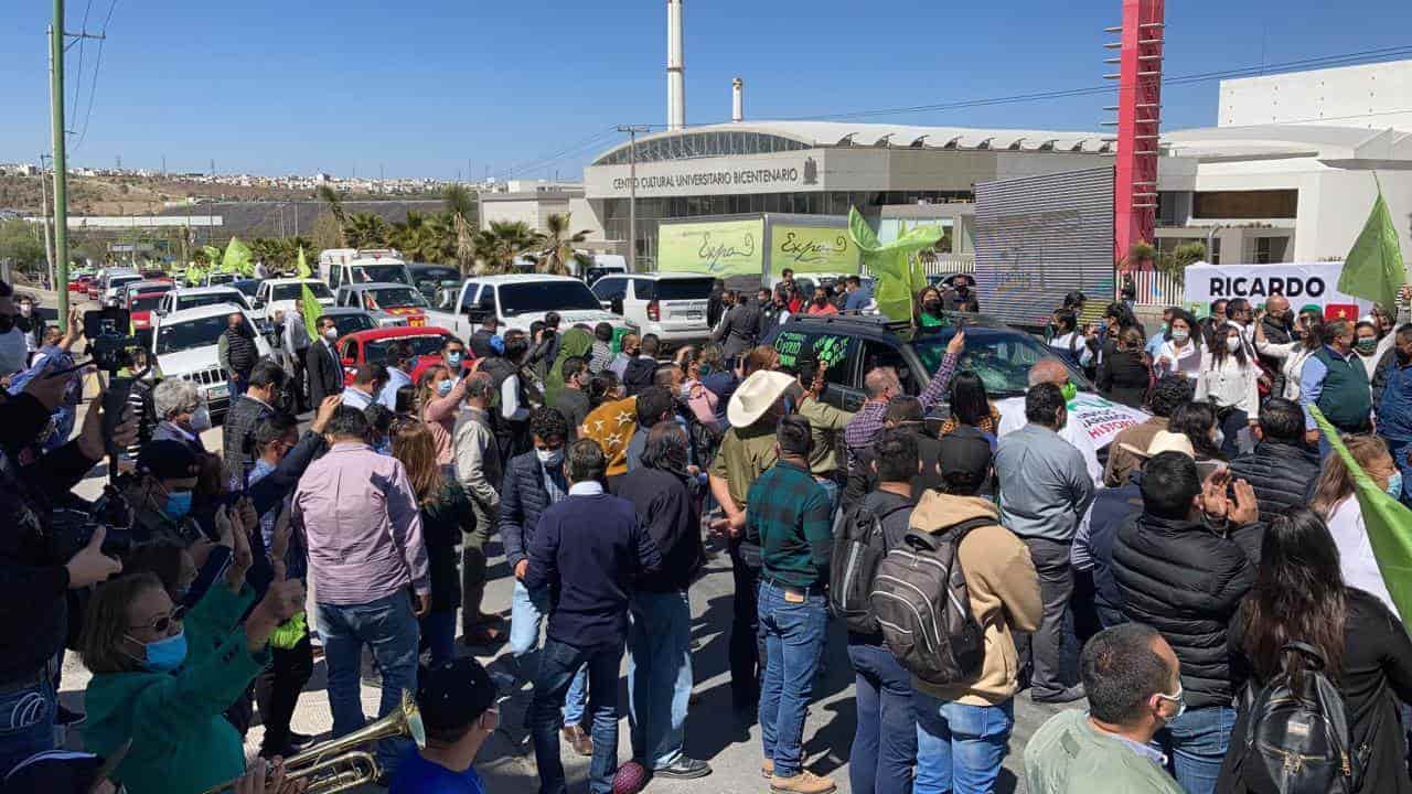 Previamente, un grupo de aproximadamente 250 vehículos y sus respectivos tripulantes aguardaron en el Fraccionamiento Villa Magna para dirigirse al Consejo Estatal Electoral y de Participación Ciudadana con el fin de participar en el proceso de registro de José Ricardo Gallardo Cardona como candidato del Partido Verde y el Partido del Trabajo a la gubernatura del estado.