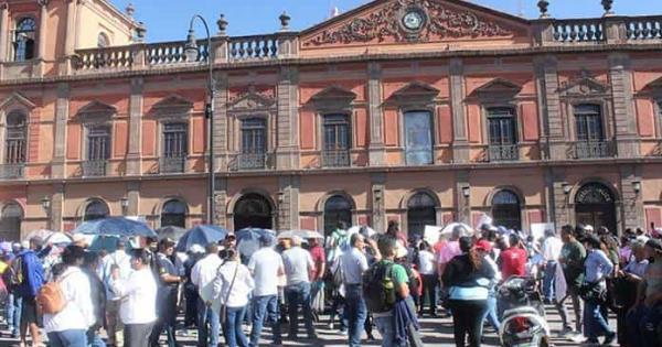 Los trabajadores administrativos se reunieron a las ocho de la mañana en la Plaza Monumental “Bicentenario-Manuel José Othón”, al pie de la bandera monumental y avanzaron por Manuel Nava hasta la avenida Venustiano Carranza, por la que llegaron hasta la Plaza de los Fundadores, donde expresaron su inconformidad por el monto de incremento salarial propuesto por la institución universitaria.