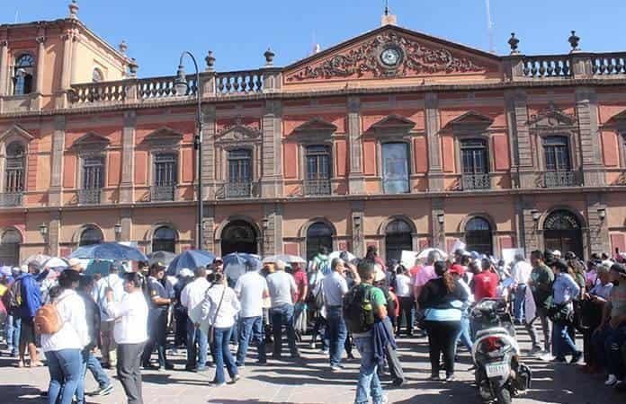 Los trabajadores administrativos de la UASLP protestaron por alrededor de una hora como parte de la movilización con la cual demandan un incremento salarial en mayor proporción al 4 por ciento que ofrece el sector patronal.
