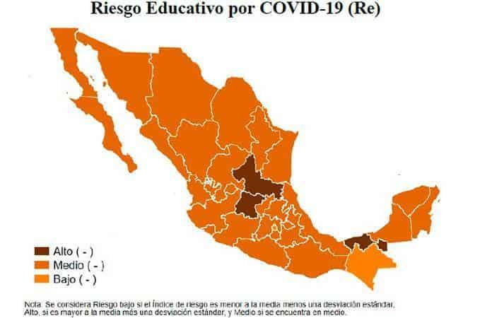 De acuerdo al estudio “La educación ante la pandemia de Covid-19. Vulnerabilidades, amenazas y riesgos en las entidades federativas de México”, las entidades federativas que mayor riesgo educativo presentan son Guanajuato, San Luis Potosí y Tabasco.