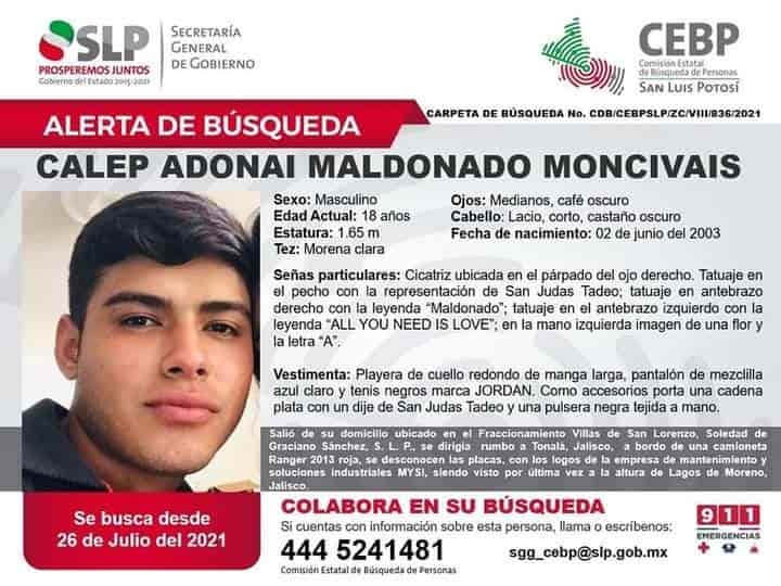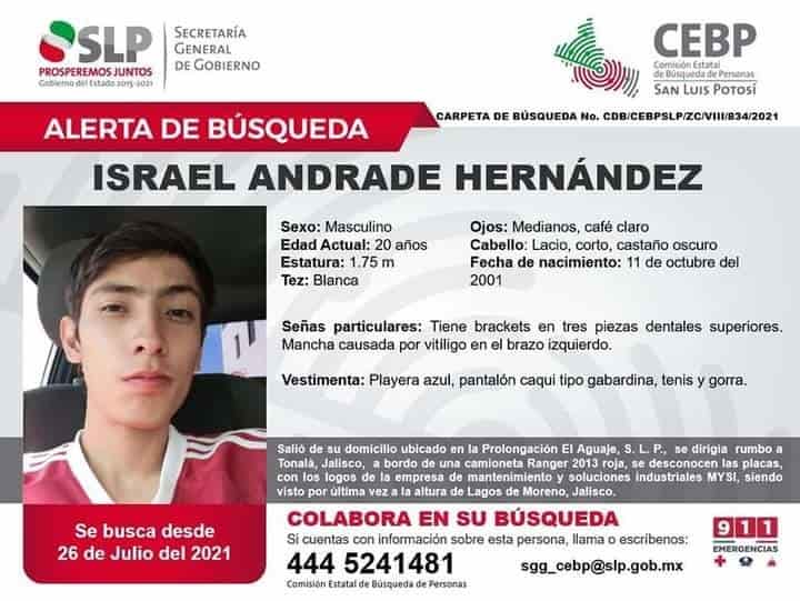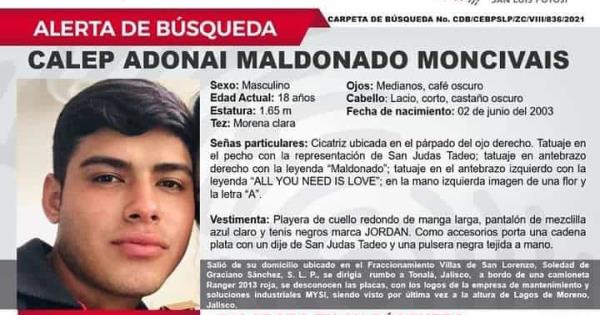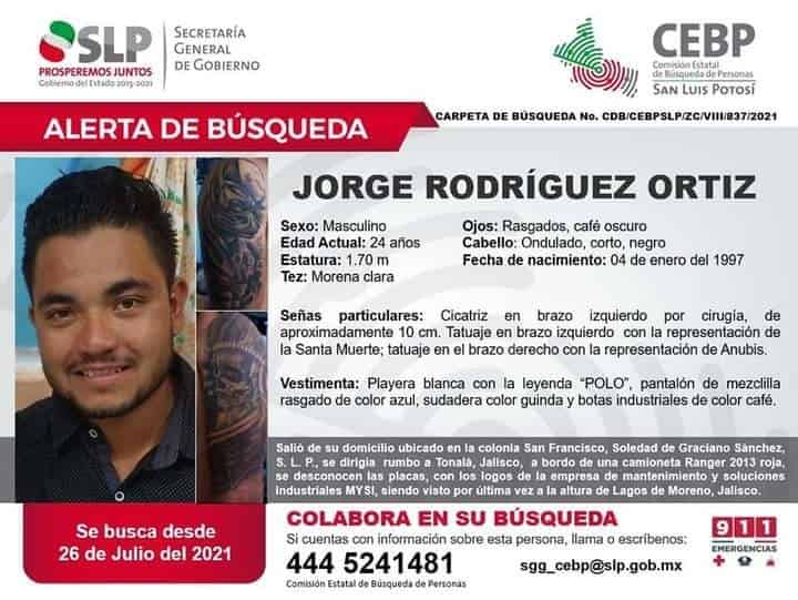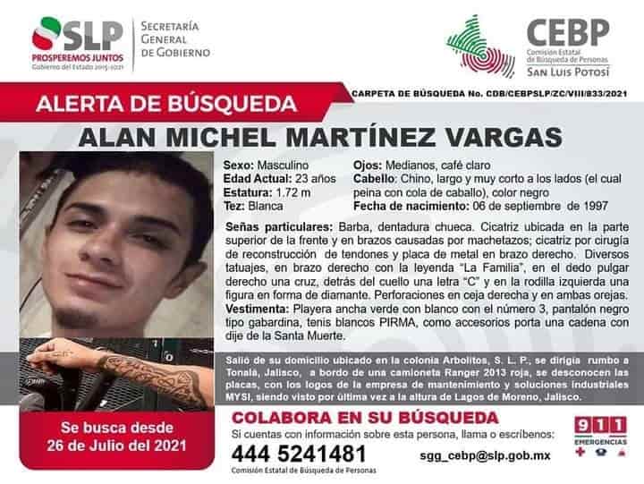 Lo anterior consta en las fichas de búsqueda emitidas por la Comisión de Búsqueda de Personas del Estado de Jalisco, y replicadas por su homóloga de San Luis Potosí.