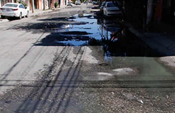 Vecinos de la comunidad Jardines del Sur denunciaron un problema persistente de encharcamiento de aguas negras en varias calles de la zona.