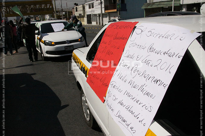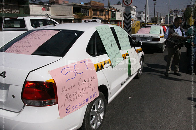 Taxistas que prestan su servicio en Escalerillas, protestaron en la Secretaría de Comunicaciones y Transportes del Estado y bloquearon en forma parcial, la circulación en un carril lateral de la Avenida Prolongación Muñoz, en demanda del retiro de vehículos pirata, que de acuerdo a la denuncia, desde hace más de 4 años invaden el recorrido autorizado para ellos por la propia dependencia estatal.