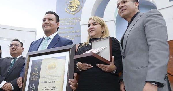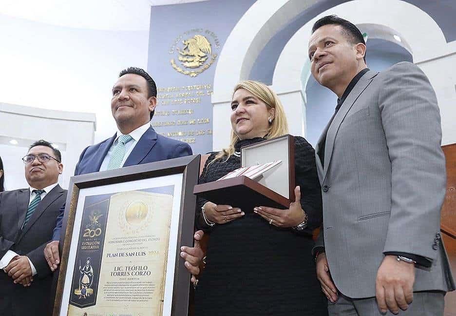 La LXIII Legislatura del Congreso del Estado otorgó la Presea al Mérito "Plan de San Luis 2024", post mortem, a Teófilo Torres Corzo, en reconocimiento a su legado y labor por la sociedad potosina.