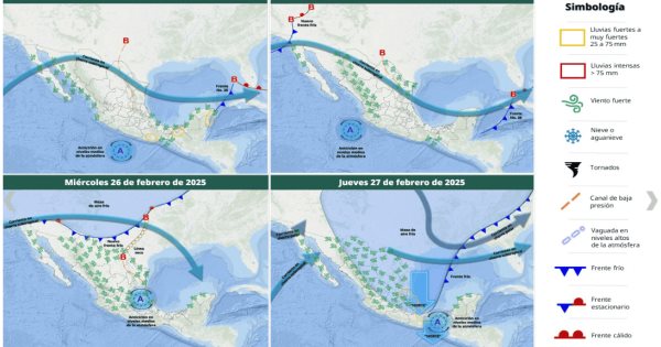 Por otro lado, a nivel nacional, se pronostican lluvias fuertes en Yucatán y Quintana Roo, así como intervalos de chubascos en Veracruz, Oaxaca, Chiapas, Tabasco y Campeche. Estas lluvias podrían estar acompañadas de descargas eléctricas, rachas fuertes de viento y posible caída de granizo.