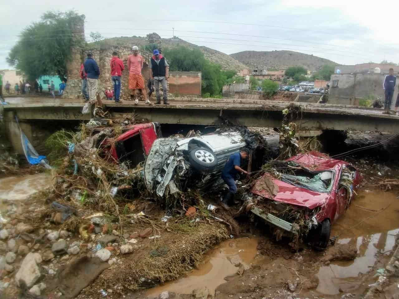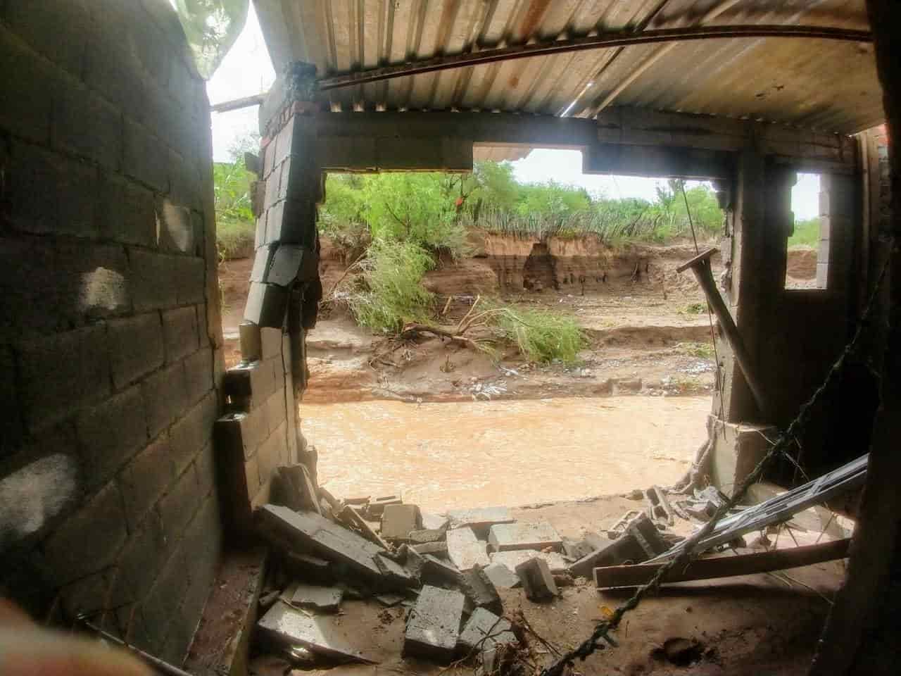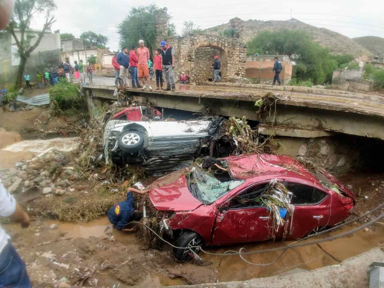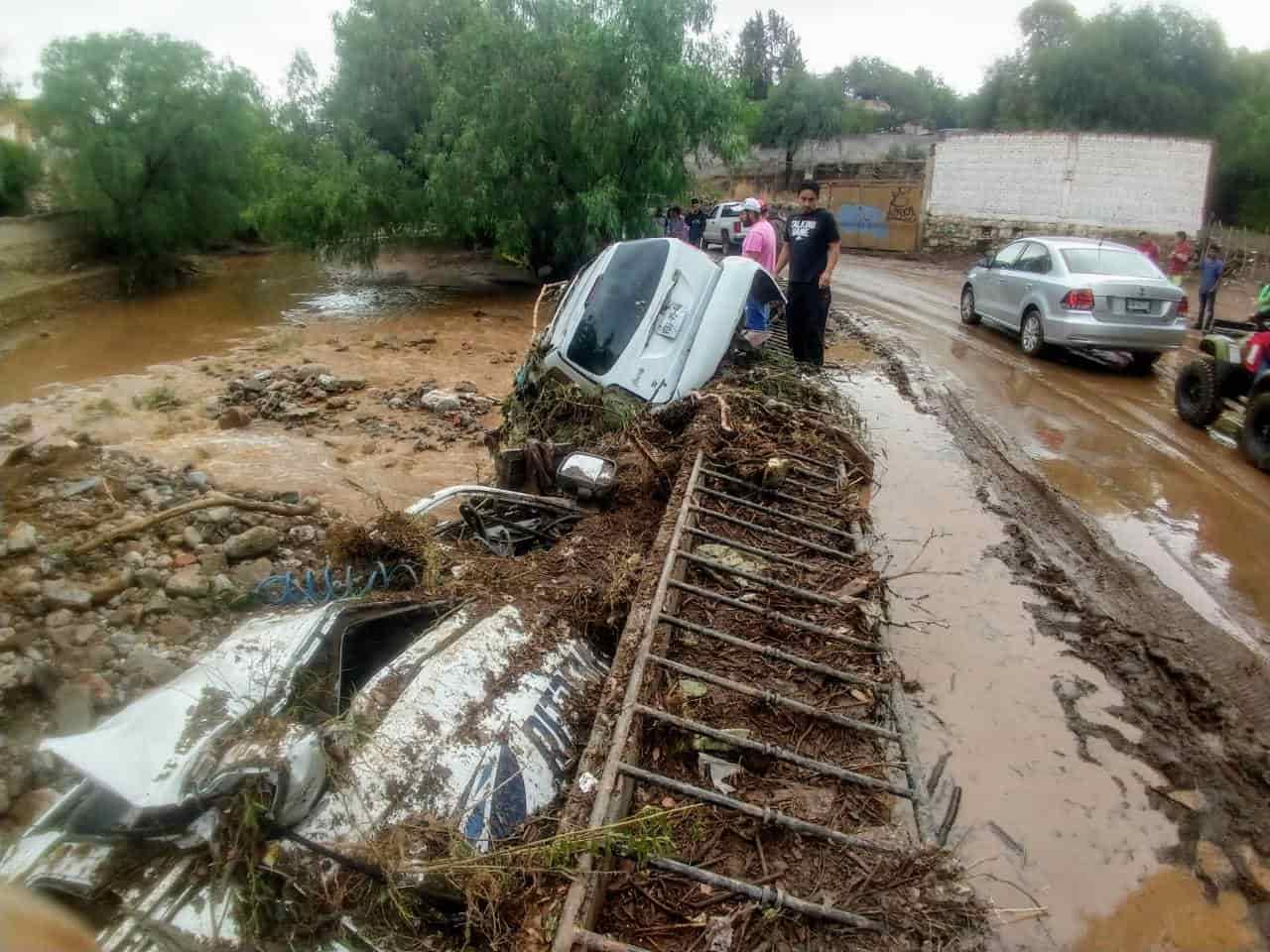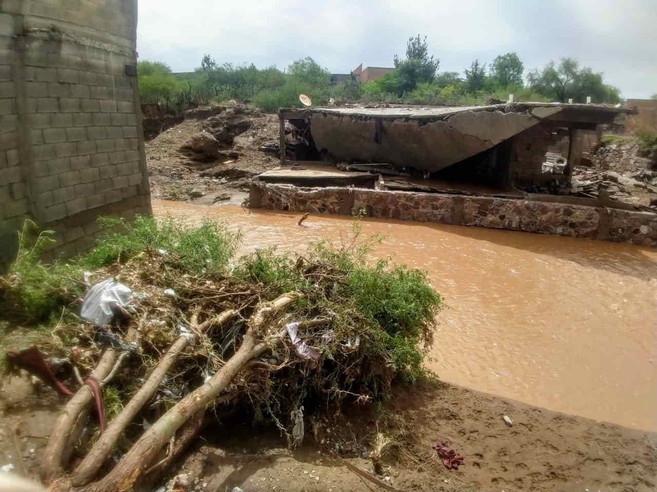 Zenón Hernández, habitante del lugar indicó que por el puente "El Ojito", se encuentran varios automóviles atorados debajo del puente y viviendas completamente destruidas por el paso de la corriente.