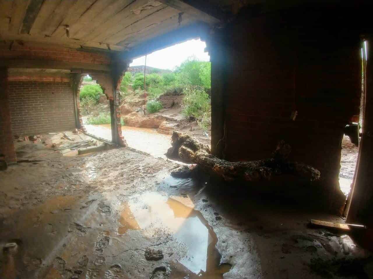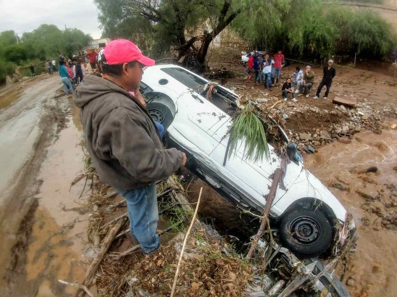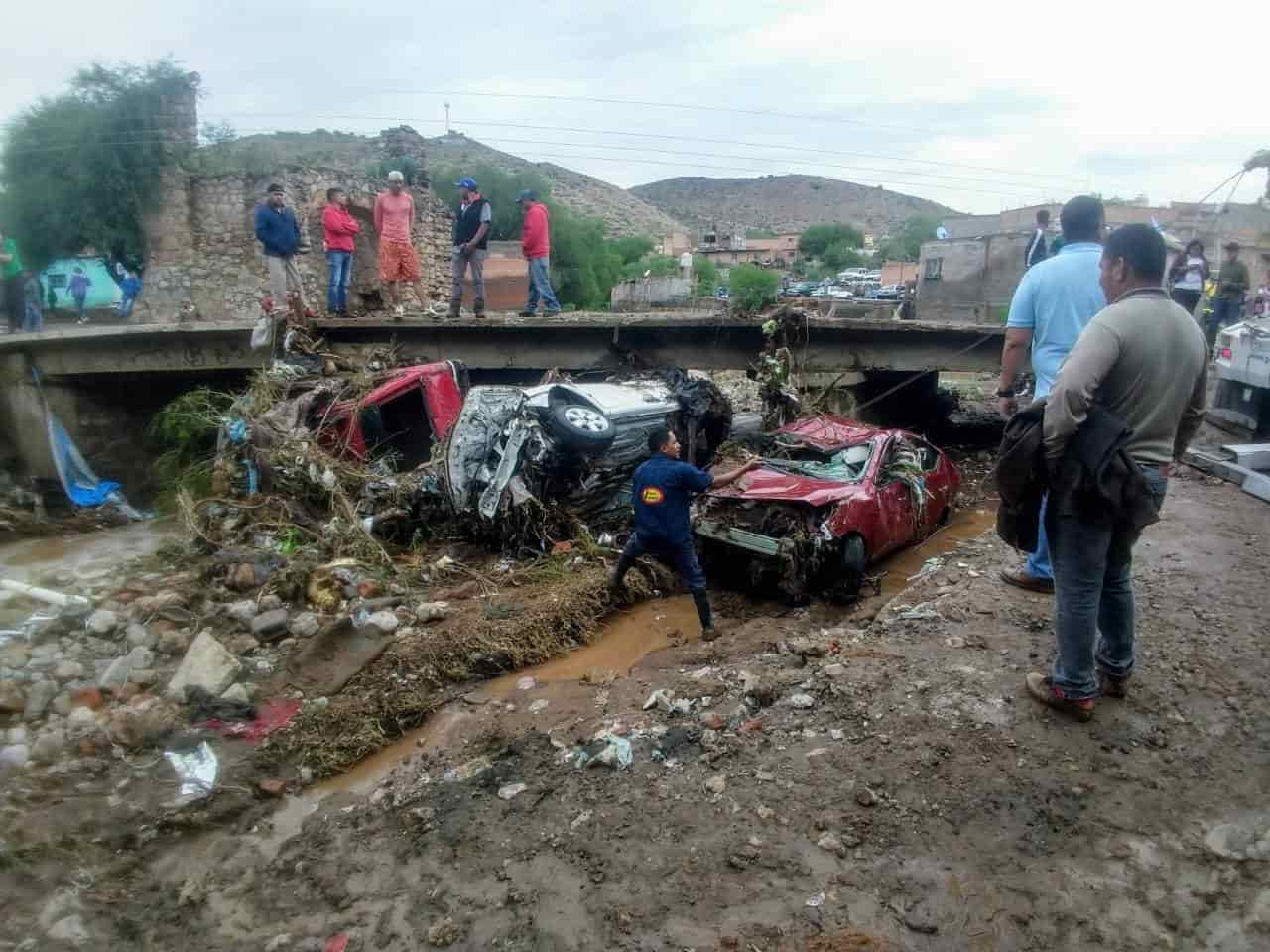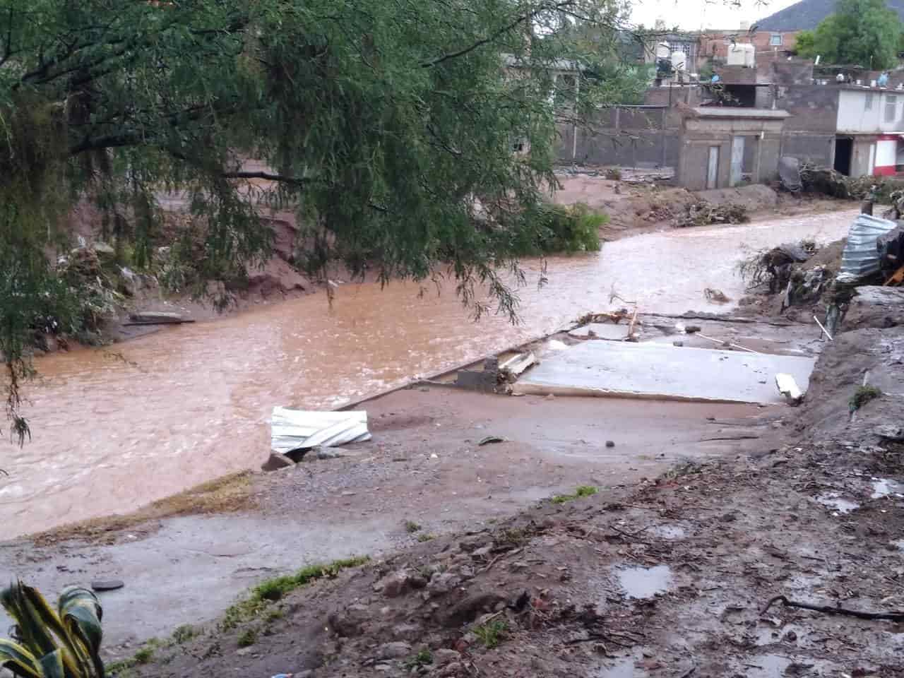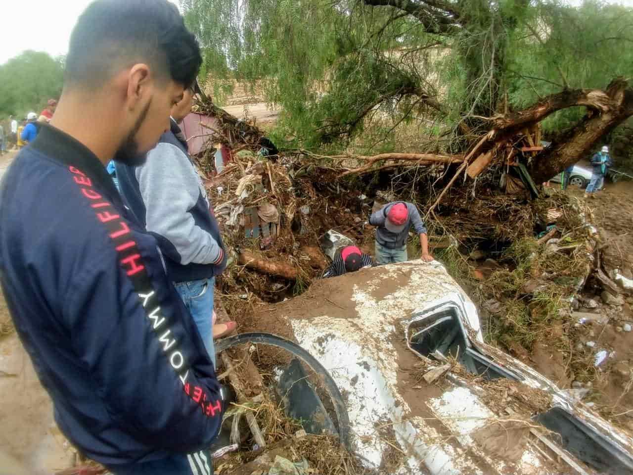 Zenón Hernández, habitante del lugar indicó que por el puente "El Ojito", se encuentran varios automóviles atorados debajo del puente y viviendas completamente destruidas por el paso de la corriente.
