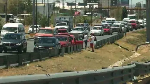 Aunque la profundidad del agua no fue excesiva y ningún coche quedó varado, los conductores avanzaban a vuelta de rueda debido a los numerosos baches en el cruce, además de la presencia de un registro sin tapa que representa un riesgo adicional.