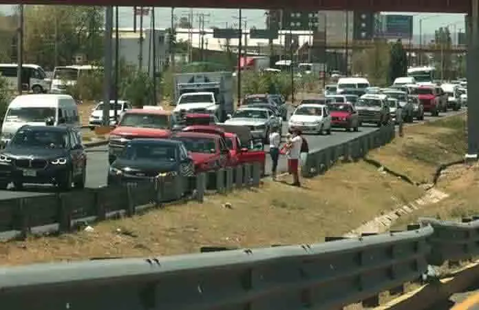El caos vial se agravó cuando varios conductores intentaron avanzar en doble y hasta triple carril, olvidando que 16 de Septiembre es una vialidad de doble sentido. Esto provocó enfrentamientos con automovilistas que buscaban ingresar a Villa de Pozos por la misma avenida.