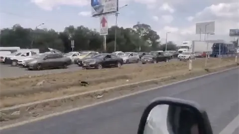 De acuerdo con imágenes y denuncias ciudadanas, la carga vehicular se extiende desde el municipio de Villa de Pozos y supera la zona del Centro de Reinserción Social de La Pila.