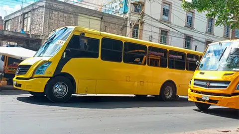 Chatarras pintadas de colores actualizados forman parte del parque vehicular que va envejeciendo de manera progresiva y ofrece un sistema de autobuses de transporte urbano que va perdiendo vigencia de manera acelerada.