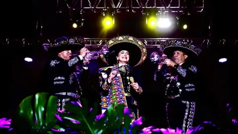El momento más emotivo de la velada llegó con la presentación de Aida Cuevas, quien interpretó temas emblemáticos del repertorio nacional, acompañada por la Banda Sinfónica. Canciones como La Bikina, México en la piel y un popurrí dedicado a Lucha Villa hicieron vibrar al público, que no dejó de aplaudir y corear cada interpretación de la “reina de la música ranchera”.