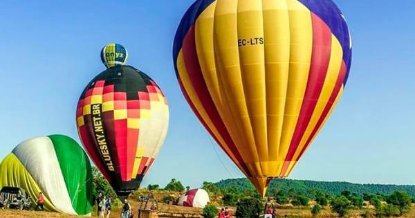 Con el vuelo de cuatro globos, turistas presenciaron en Mexquitic de Carmona su primer festival del globo.