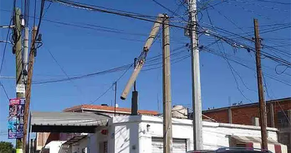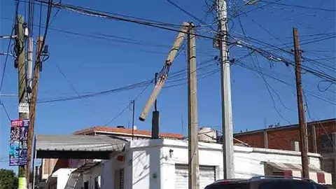 En otro caso, también se encuentra a punto de caer un poste ubicado en la calle José Vilet, diez metros al norte de la avenida Acceso Norte, frente al taller Automotriz PAMI.