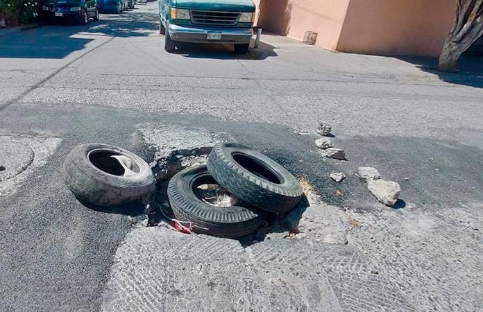 Un socavón en la calle Portugal en la colonia Jardines del Oriente, en la capital potosina, ha generado preocupación entre las y los vecinos, quienes, ante la falta de atención de las autoridades, optaron por cubrirlo con llantas como una solución temporal. Sin embargo, esta medida ha causado dificultades en la circulación vehicular y peatonal en la zona.