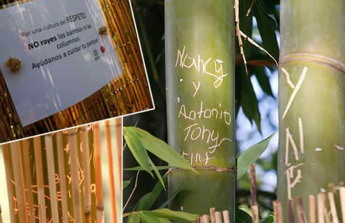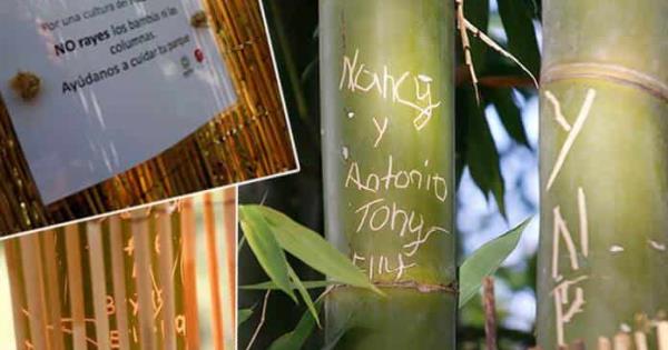 Incluso en una de las fotografías aparece una pareja que causa daño a los bambús y se le exhibe en redes sociales. Los bambús fueron rayados con navaja, y en el largo proceso técnicamente todos los bambús resultaron dañados.