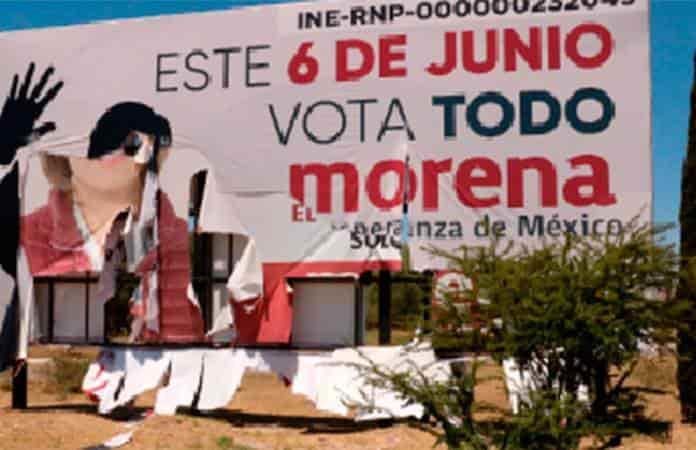 Un espectacular de apoyo a Mónica Liliana Rangel Martínez, candidata a gobernadora de Morena, con la silueta del presidente Andrés Manuel López Obrador, fue vandalizado por personas desconocidas.