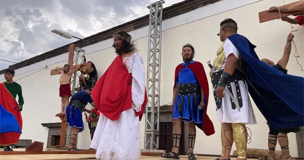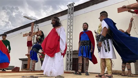 Con un entusiasmo propio de un lustro más, la escenificación de la pasión de Cristo cumplió 65 años en San Juan de Guadalupe.