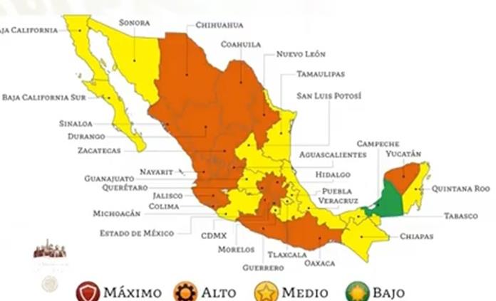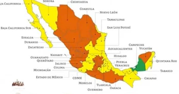 Para las próximas dos semanas no hay estados con semáforo rojo. 17 permanecerán en semáforo naranja, 14 (entre los que se incluye San Luis Potosí) estarán en amarillo y solo Campeche estará en verde.