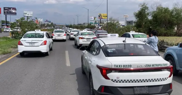 Los taxistas iniciaron su protesta luego de concentrarse frente a la Terminal Terrestre Potosina (TTP), y de ahí avanzaron por los carriles centrales de la carretera 57 hasta el Eje 140.