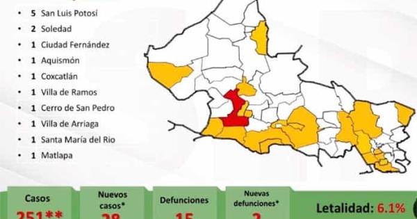 San Luis Potosí acumula hasta este viernes 251 casos de coronavirus, lo que representa un incremento de 28 contagios a comparación de ayer.