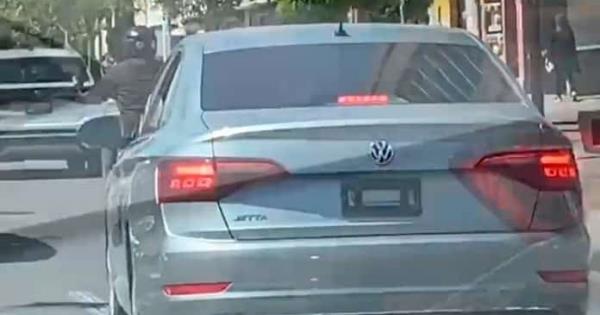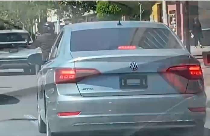 En un video que subió a sus redes sociales, se observa al vehículo, un Jetta gris, sin placas y con luces estroboscópicas encendidas.