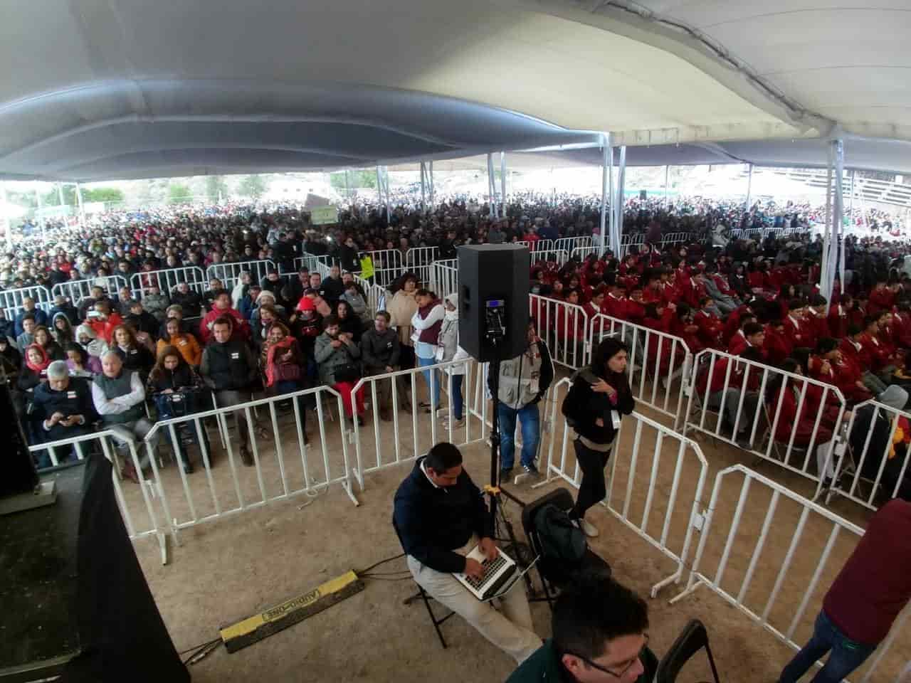 Como en ocasiones anteriores habló sobre los programas de becas y apoyos federales, ante lo que fue vitoreado por algunos asistentes, aun cuando muchos de ellos ya los había mencionado con anterioridad.