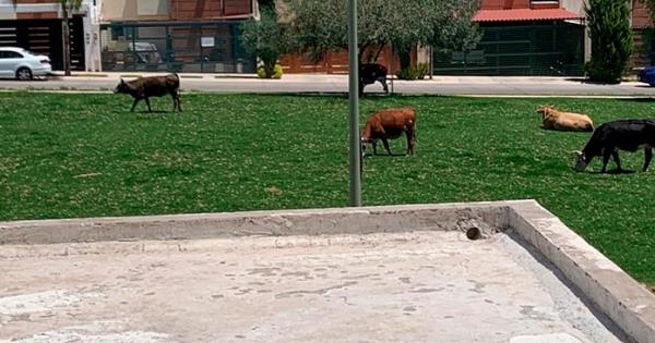Ayer, de ese fraccionamiento llegaron a este medio informativo algunas imágenes en las que se aprecian cinco ejemplares bovinos pastando en los jardines de Villa Magna.