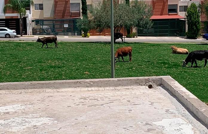Mientras tanto, además de los daños que los animales provocan a las áreas verdes, se vive el problema de los desechos que aquellos riegan en las calles y banquetas del fraccionamiento.