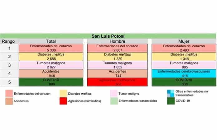 En 2021, murieron cuatro mil 566 personas de este mal, mientras que el año pasado, la cifra fue de 896 potosinos.