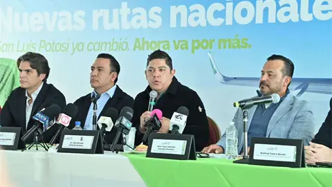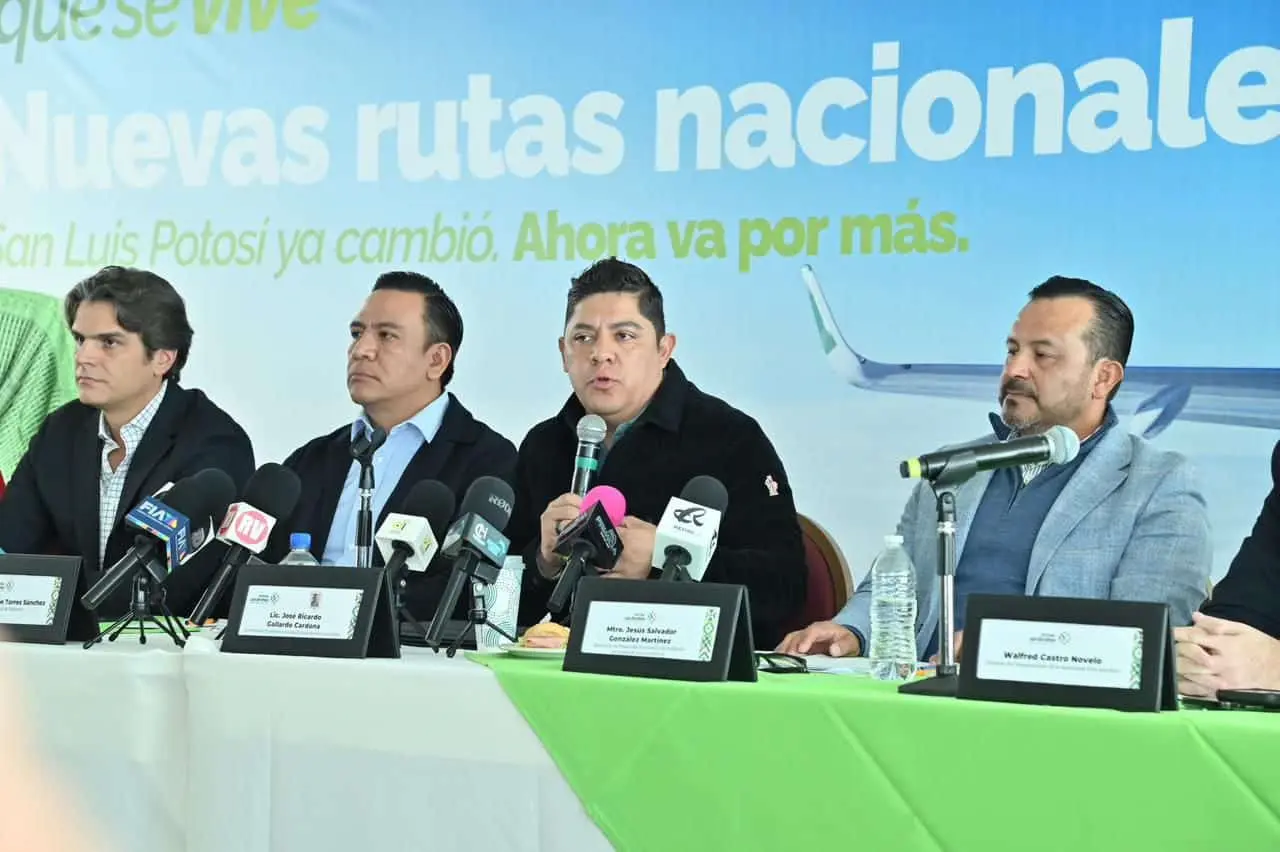 San Luis Potosí sumará nuevas rutas aéreas hacia Ciudad de México y Monterrey a partir de 2026, tras el anuncio del gobernador Ricardo Gallardo Cardona sobre la incorporación de estos vuelos en alianza con la aerolínea Viva Aerobus.