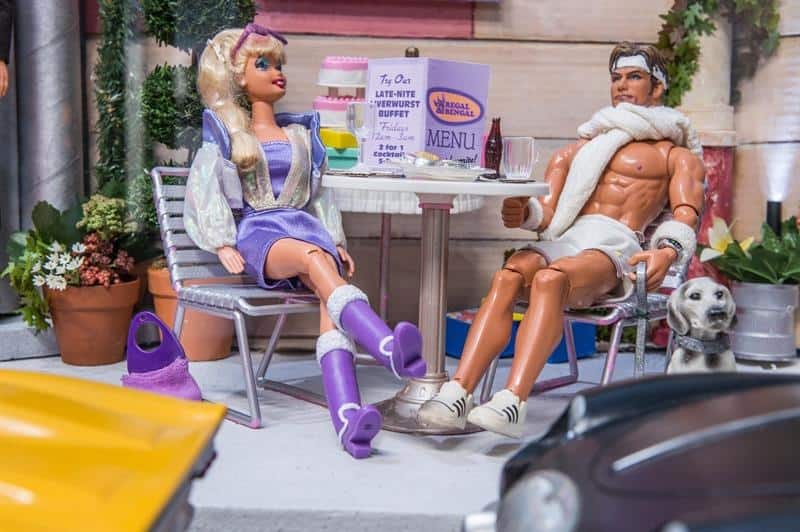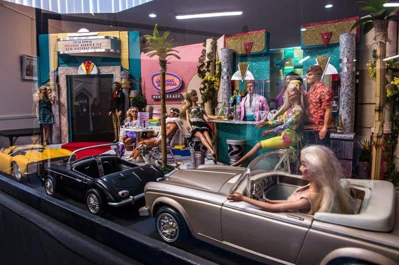 Nada más entrar a la Art Gallery 21, fundada y dirigida por Ruppender, las piezas que más llaman la atención del visitante son dos enormes vitrinas con sendas escenas en su interior hechas a escala de Barbie y con muñecas como protagonistas.