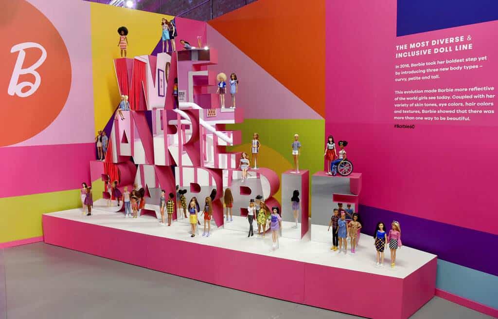 Barbie no solo tiene infinidad de prendas de ropa, complementos y compañeros, también a partir de 1980 empezó a tener versiones étnicas y en 2016 distintos tipos de cuerpo -alta, bajita o con curvas- para reflejar la diversidad de la mujer.