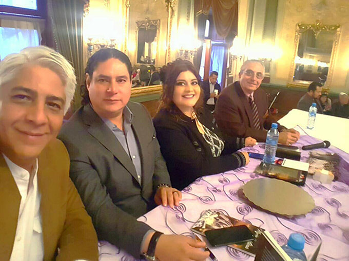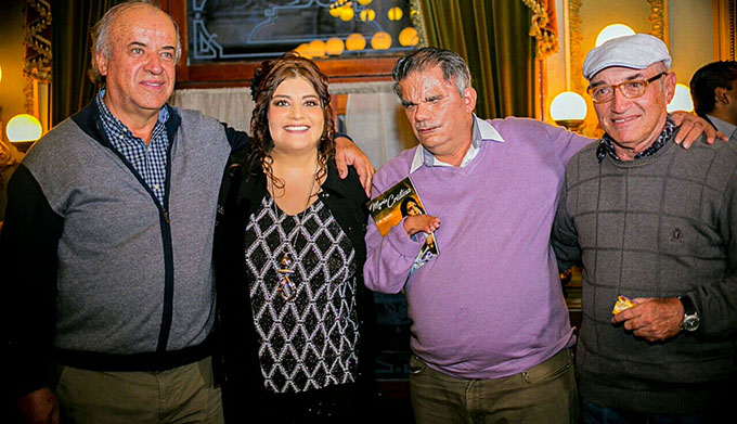 Con Cale en la presentación del libro, el maestro Daniel de la Llera, el historiador Andrés Lecuanda M., y el psicólogo Edgar Coronado M.